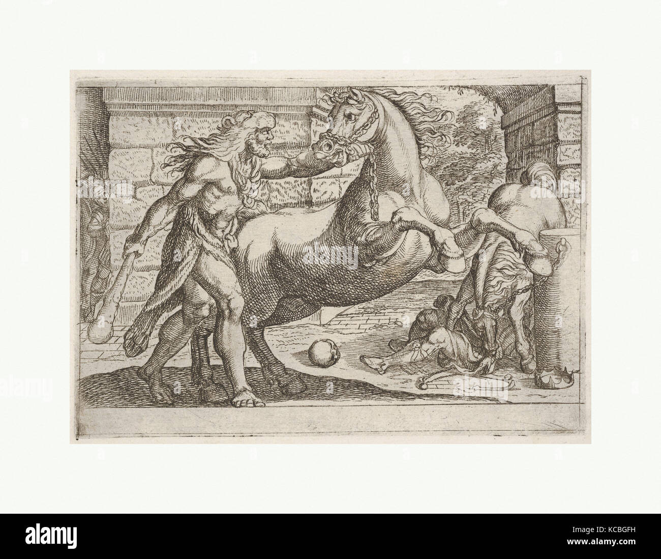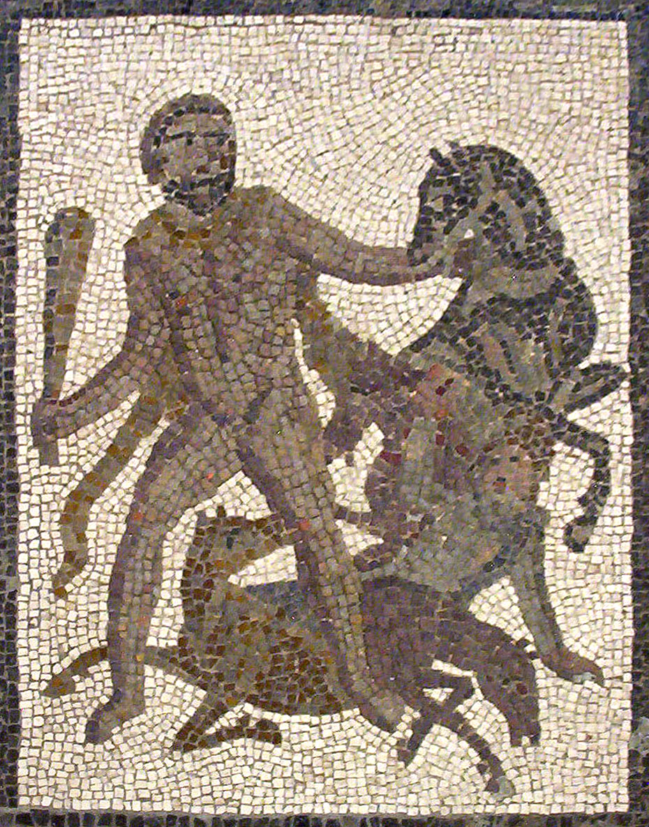 Der Sohn des Mars, Diomedes, von feurigem Ruf, herrschte im Land hinter dem Tor und züchtete dort in den Sümpfen Kriegspferde und Stuten. Wild waren die Pferde und hitzig und alle Menschen zitterten, wenn sie diese hörten, denn sie verwüsteten das Land weit und breit. Sie richteten Großen Schaden an und töteten die Söhne der Menschen, die ihnen in den Weg kamen. Und ständig zeugten sie sehr wilde, böse Pferde.