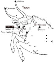 Das «Auge des Bullen» im Stier, der herrliche Fixstern Aldebaran, ist einer der Gründe, warum diese Konstellation als Erleuchtung übermittelnd angesehen wird. In alten Tagen wurde er der führende Stern der Himmel genannt. Der Stier wurde immer mit Licht in Verbindung gebracht und deshalb mit Christus, der von sich selbst sagte, er sei das Licht der Welt. Licht, Erleuchtung und der Ton als ein Ausdruck schöpferischer Kraft – dies sind die drei grundlegenden Ideen, die mit dieser Konstellation verbunden sind. Der «Interpret der göttlichen Stimme», wie Stier im alten Ägypten genannt wurde, kann in der christlichen Terminologie frei wiedergegeben werden als «das fleischgewordene Wort». Es ist ein interessanter Hinweis auf die Macht der zodiakalen Einflüsse, wenn wir uns vergegenwärtigen, dass Worte wie «Bullaugenlaterne», was auf das Bullauge im Sternbild Stier hinweist und die päpstlichen «Bullen», die päpstlichen Kundgebungen, die als Interpretation der Stimme Gottes betrachtet wurden, allgemein gebräuchlich sind.