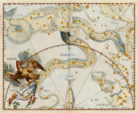 Die zweite Konstellation, die mit diesem Zeichen verknüpft ist, ist ein unermesslicher Sternenfluss, der den Füßen des Orion entströmt. Er wird Eridanus genannt oder «der Fluss des Richters» und ist ein Symbol des Lebensstromes, der die Seelen in die Inkarnation trägt, wo sie die Bedeutung der Worte lernen «was ein Mensch sät, das wird er ernten», und wo sie die ungeheure Aufgabe unternehmen, ihre eigene Erlösung zu erwirken. Ebenso wie Orion den Geistaspekt symbolisiert, steht Eridanus für den formannehmenden Aspekt und hält uns den Gedanken der Inkarnation vor Augen, während die dritte Konstellation, Auriga, der Wagenlenker ist, der in neue Länder führt und so die Seele symbolisiert.