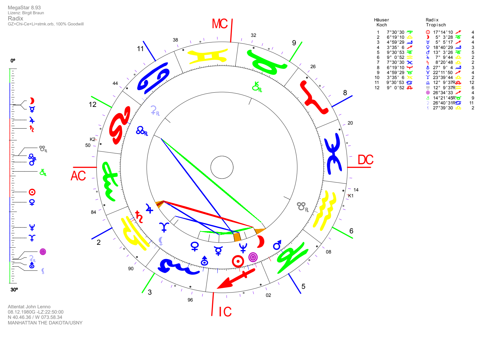 Im Horoskop des Sängers und Musikers John Lennon, der dieses Jahr seinen 85. Geburtstag feiern würde, sehen wir eine kraftvolle Mischung einer dynamischen Persönlichkeit, die den Ausgleich in einer in der Öffentlichkeit gelebten Partnerschaft suchte und intensive Transformationsmuster erlebte, die sich in seiner beruflichen Karriere, seinen Beziehungen und seinem Lebensende widerspiegeln.