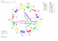 Uranus auf der Spitze des 2. Hauses in Stier signalisiert radikale, plötzliche Neuausrichtungen des Selbstwerts und der materiellen Sicherheit. Das Trigon zu Neptun im fixen Bereich des 6. Hauses macht diese Unangepasstheit dienst‑ und arbeitsfähig: Visionen werden täglich geübt und handwerklich verwirklicht. Das Quadrat zum Galaktischen Zentrum am Invertpunkt des 9. Hauses legt eine Spannung über den Sinn und dessen Bedeutung für die Menschheit frei, die durch eine Quincunx‑Rückkopplung auf Uranus ständig neu ausgerichtet werden muss. Es entsteht ein sehr kraftvolles und fokussiertes Thema von individueller Rebellion und ein plötzliches Auftauchen einer ausgeprägten Identitätsenergie, die durch spirituelle und kreative Arbeitsleistung kanalisiert wird und gleichzeitig unter unter Druck einer schicksalhaften, kollektiven oder transzendentalen Mission steht.