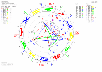 Die Venus in Jungfrau an der 6. Hausspitze in der praktischen und das Detail liebenden Jungfrau weist auf eine künstlerische Arbeit, die sorgfältige Technik, Perfektionismus und dienende Ästhetik verlangt. Beziehungen und Kreativität werden durch Alltagsstrukturen und handwerkliche Genauigkeit geprägt.