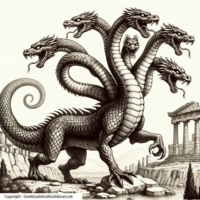 Zischend schoss die Hydra vor und suchte des Herkules Füße zu umschlingen. Er sprang zur Seite und versetzte ihr einen so vernichtenden Hieb, dass eines der Häupter abgetrennt war. Kaum war das schreckliche Haupt im Sumpf verschwunden, schon wuchsen zwei neue an seiner Stelle. Immer wieder griff Herkules das rasende Ungeheuer an, aber es wurde nicht schwächer, sondern stärker.