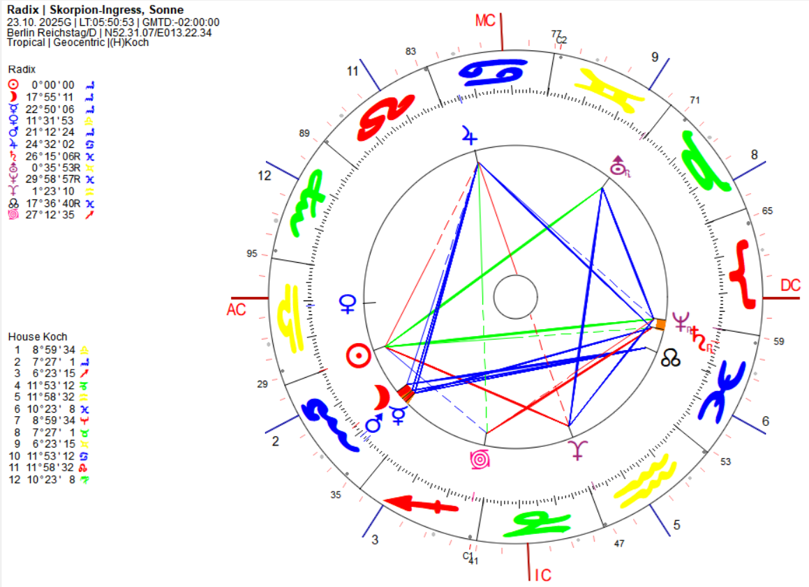 In der Astrologie kann der Tod vieles bedeuten. Es mag heißen, dass wir sterben müssen. Das ist die eine Auslegung. Vielleicht sterben wir nur für eine alte Empfindung in uns, sie ist gestorben «tot». Viele kristallisierte, langgehegte Ideen Dogmen, die bis jetzt unsere Aktivitäten beherrscht haben, sind einfach zu Ende und man wundert sich, wie es möglich war, wirklich einmal so gedacht zu haben. Diese Denkrichtung ist jetzt gestorben. Es ist wertvoll, das große Bild zu sehen und zu lernen, es in den verschiedenen Aspekten der Persönlichkeit zu interpretieren.