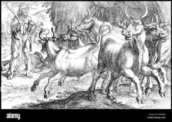 Und nach der Heiligen Stadt trieb Herkules die sanfte rote Herde. Schwer war das Werk. Wieder und immer wieder verliefen sich die Tiere und Herkules ging auf die Suche nach den Verirrten.